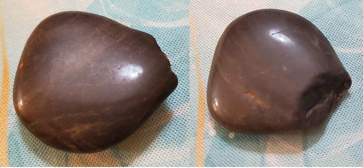 At first glance, it looked smooth and polished (left). I picked it up and ran my fingers over the silky surface. Then I turned it over, and found that there was a chunk missing on one side, leaving a rough and uneven edge where this piece had chipped off. This wasn’t a smooth and perfect stone – it was damaged, it had a story.